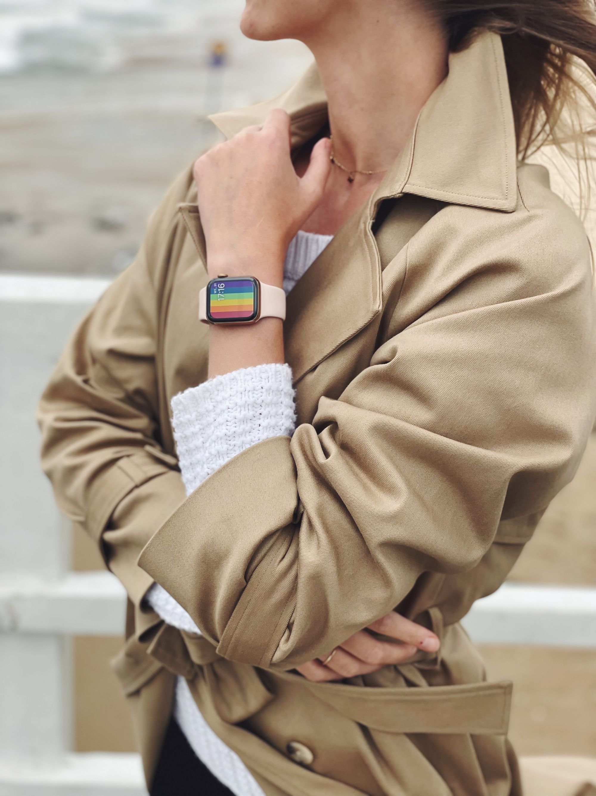 Od zawsze nosiłam tradycyjne zegarki na złotym pasku, więc przez długi czas nie rozważałam Apple Watch'a ze względu na jego, wydawaćby się mogło, sportowy charakter. Różowe złoto metalowej bransolety przełamuje jednak te skojarzenia i idealnie pasuje do bardziej eleganckich stylizacji, co okazało się być dla mnie świetnym rozwiązaniem.